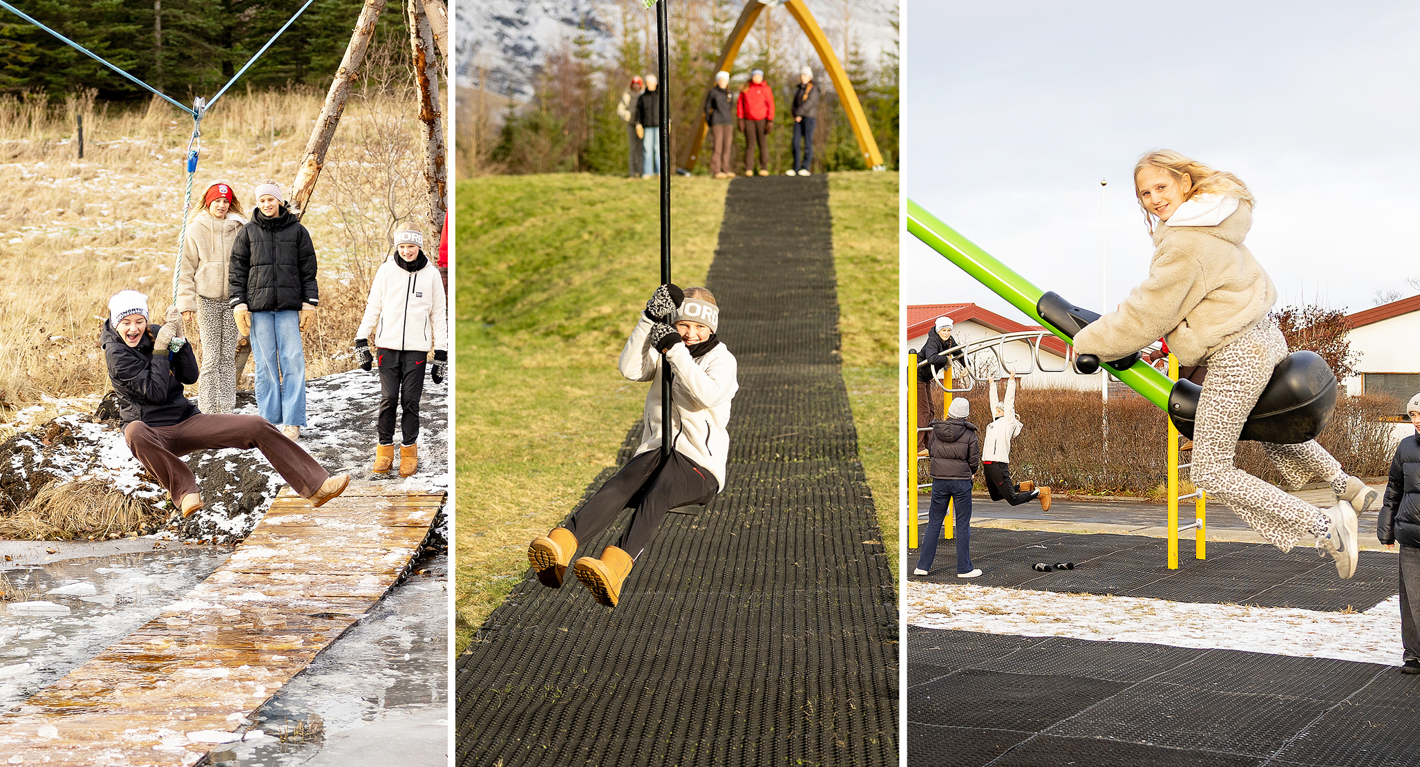 Nokkrir hressir krakkar tóku sig til í byrjun vikunnar og tóku tækin formlega í notkun en tækin ættu ekki að hafa farið fram hjá krökkum í bænum sem hafa nýtt sér hlýindin í október til að leika sér þar.