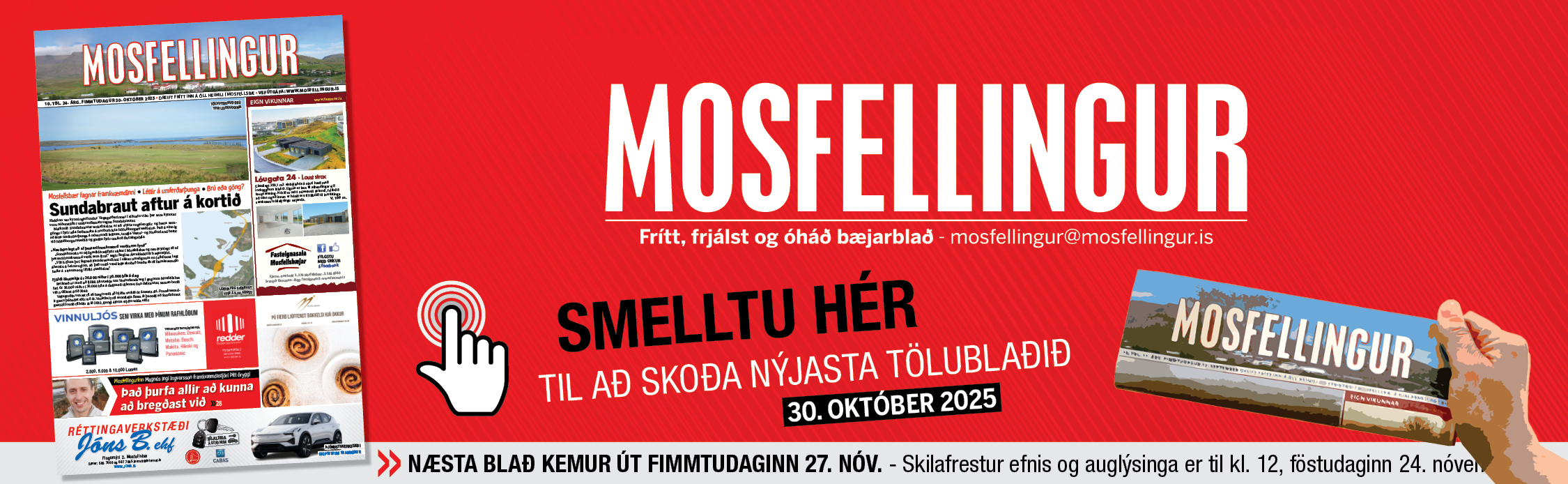 Haldinn var kynningarfundur Vegagerðarinnar í síðustu viku þar sem kynntar voru niðurstöður umhverfismats vegna Sundabrautar. Markmið Sundabrautarverkefnisins er að stytta vegalengdir og bæta samgöngur fyrir alla ferðamáta á norðurhluta höfuðborgarsvæðisins. Það á einnig að létta umferðarþunga á núverandi leiðum, tengja Vestur- og Norðurland betur við höfuðborgarsvæðið og greiða fyrir umferð flutningabíla. „Nauðsynlegt að af þessari […]